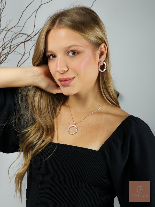 The necklace and matching earrings bring timeless elegance and modern sophistication, perfect for both everyday wear and special occasions.