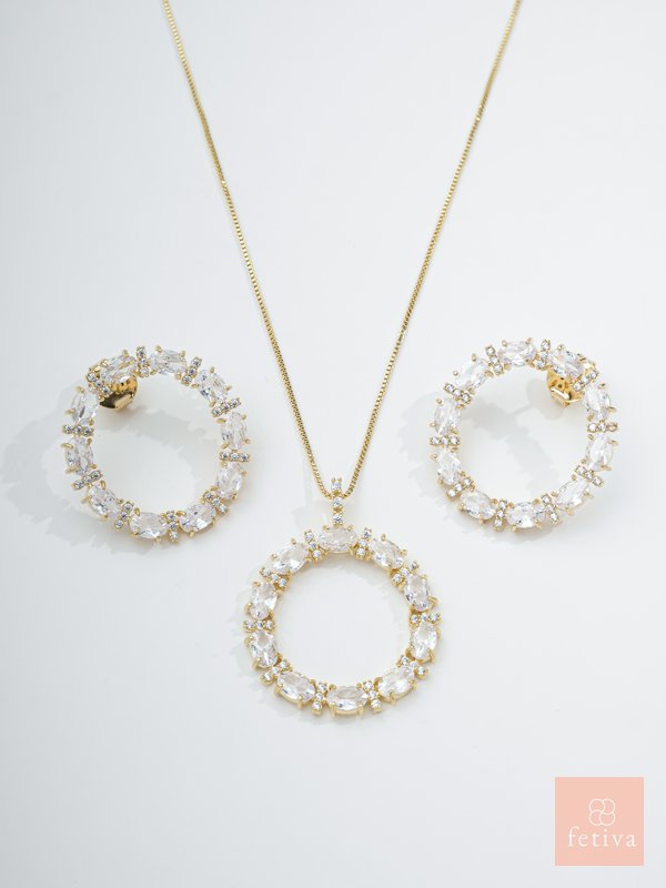 A stunning set plated in 18k gold , hypoallergenic, and embellished with brilliant zirconia stones