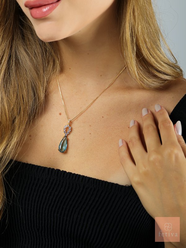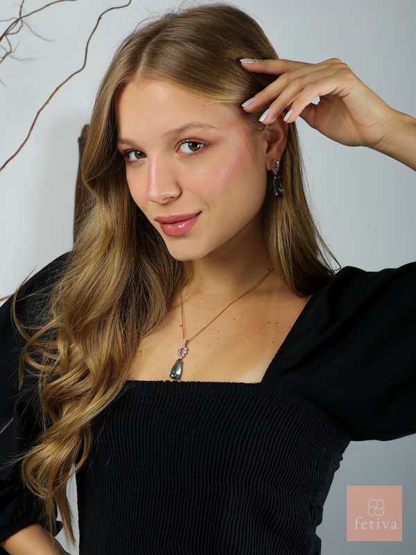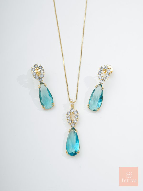 An 18k gold-plated , hypoallergenic set with ocean-blue teardrop crystals